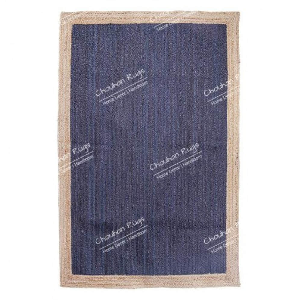 3x5 Feet Flore Area Jute Rug Blue With Natural Border