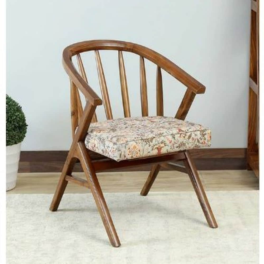 Aadya Teak Wood Upholstered Armchair In Natural Finish