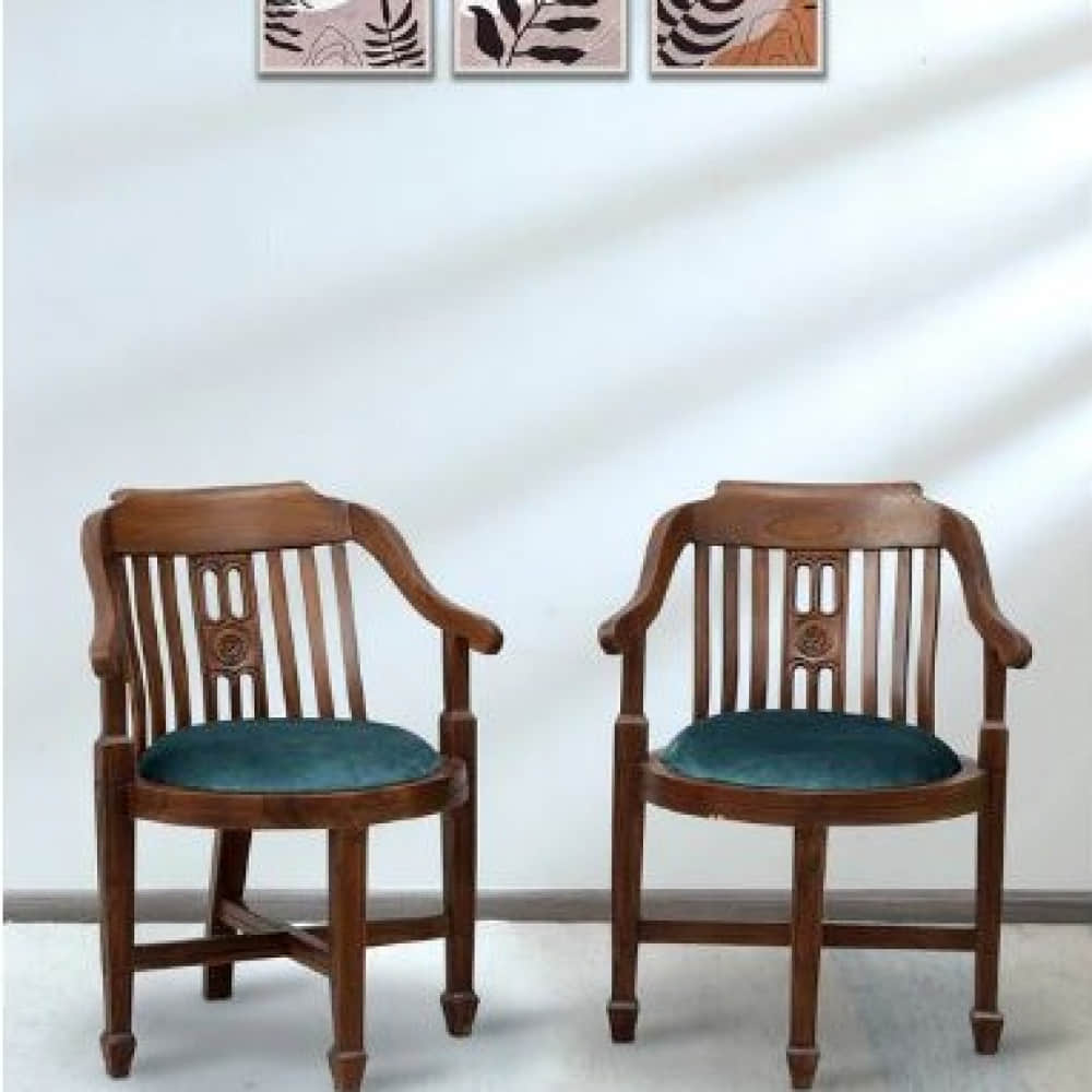 Aakruti Teak Wood Arm Chair (set Of 2) In Teal Colour