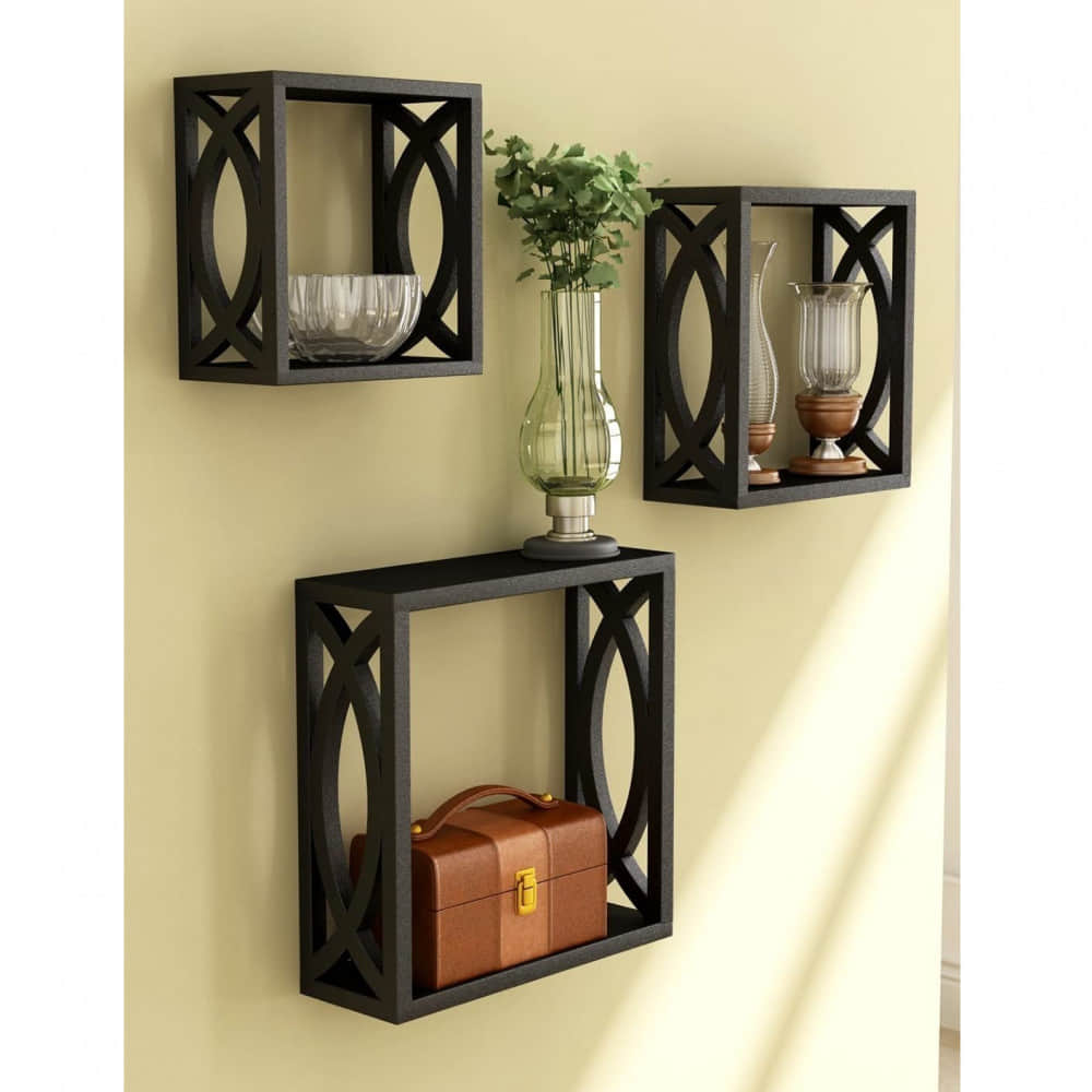 Square Cube Floating Wall Shelves (set Of 3 Black)