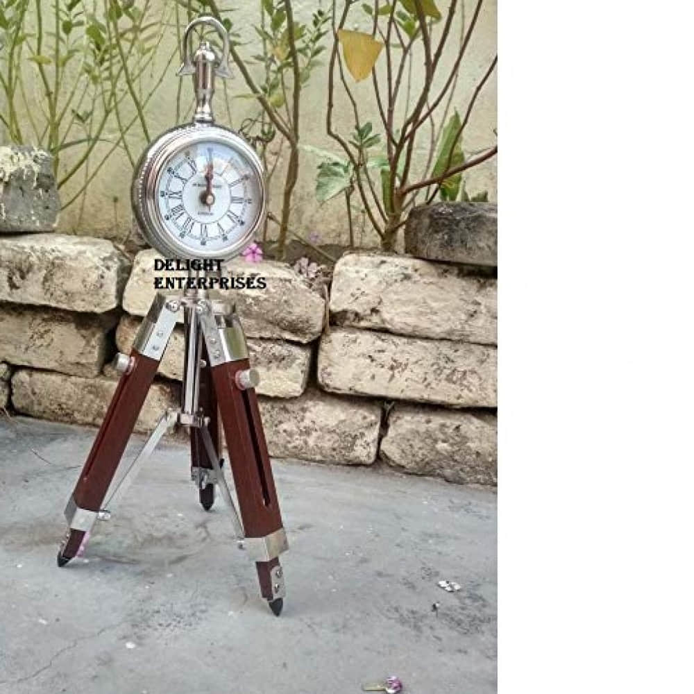 Adjustable Wooden Tripod Stand Clock Shiny Silver Clock Desk Clock Home Decor