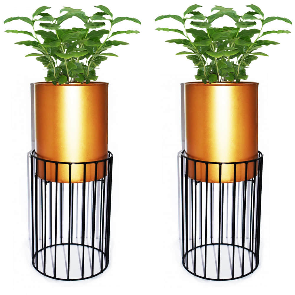 Long Neck Metal Wire Based Planter Stand With Pot- Set Of 2