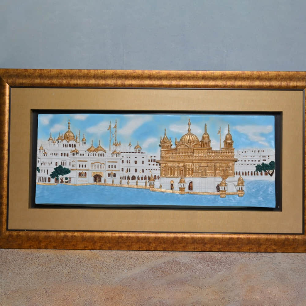 Beautiful Golden Temple Painting Wall Art Decor With Golden Frame