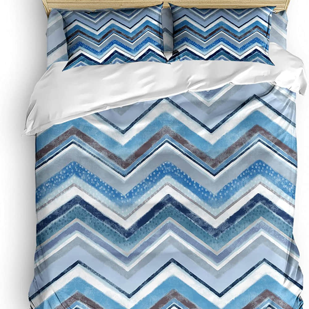 Blue Printed Comforter Set Of 4(90x100) Inches