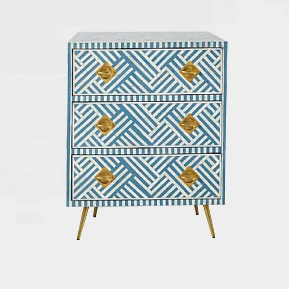 Bone inlay sideboard or dresser with handles in a stroked brass finish is an age-old traditional art form