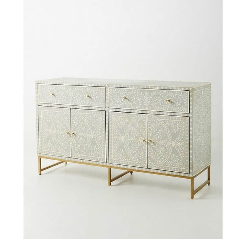 Bone Inlay Scroll Vine Design Entryway Cabinet
