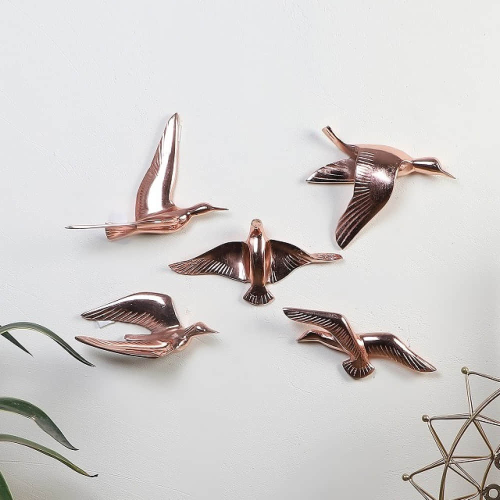 Bristol Copper Aluminium Decorative Birds Set Of 5