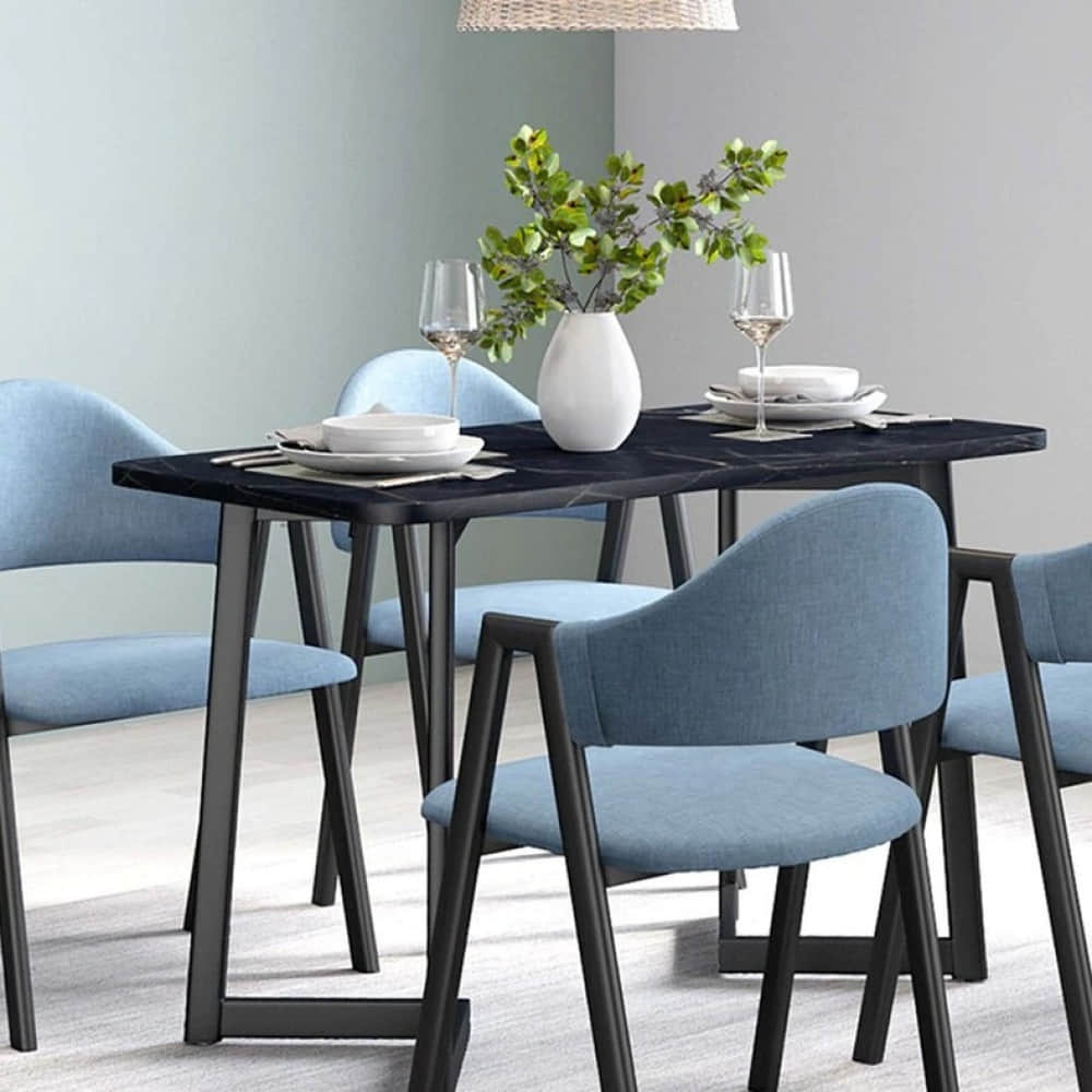 This eye-catching table proudly displays a mesmerizing rectangular tabletop with an elegant design