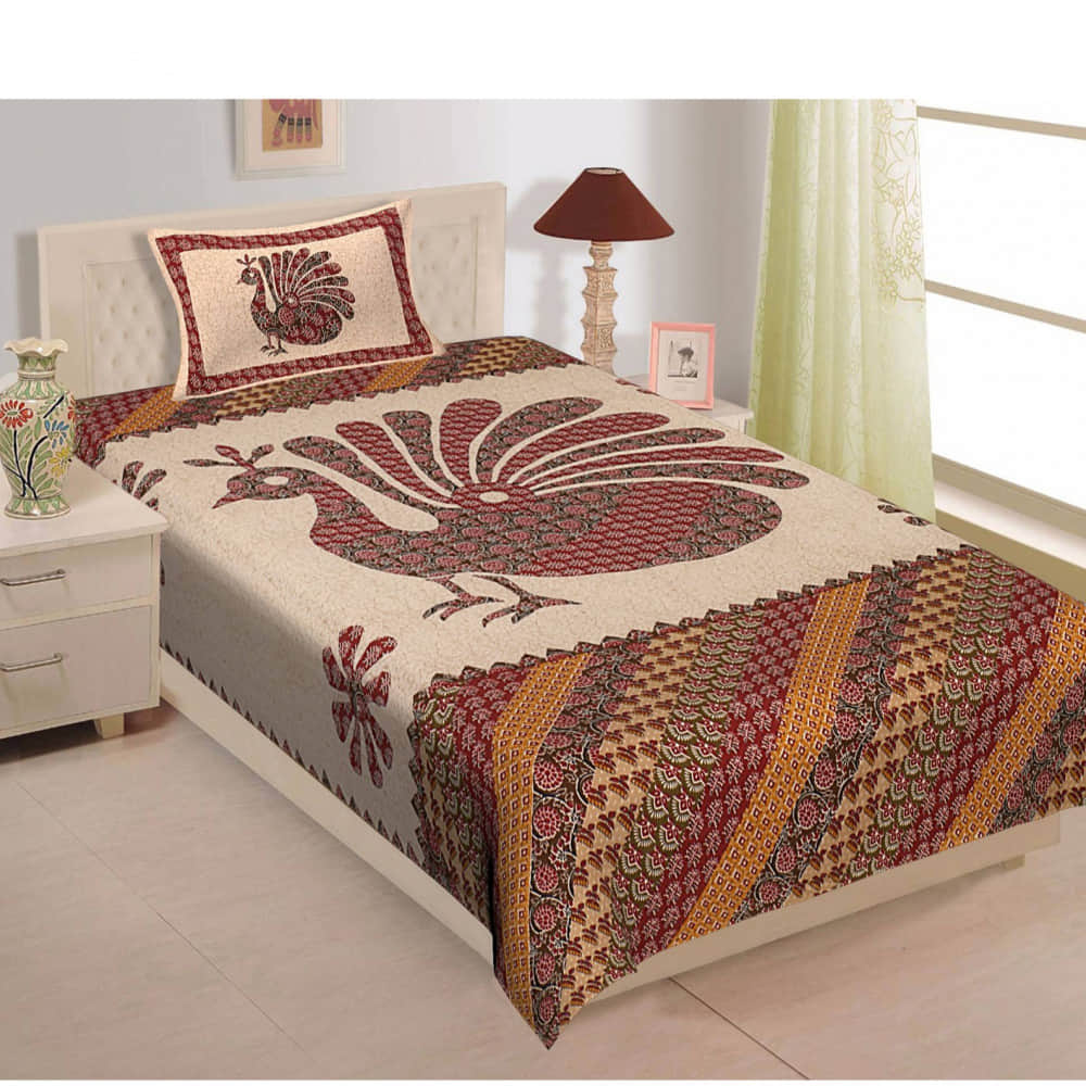 Pure Cotton Jaipuri Print Single Bedsheet With Pillow Cover - Multicolour