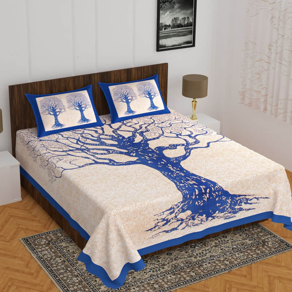 Cotton Double Bedsheet With Pillow Covers Jaipuri Print - Blue