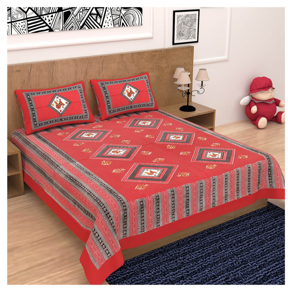Cotton Double Bedsheet With Pillow Covers Jaipuri Print - Red