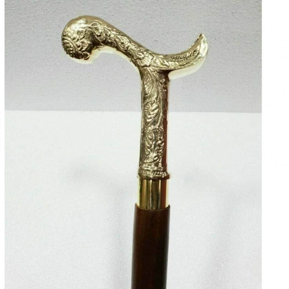 Vintage Antique Wooden Walking Stick With Brass Head Handle