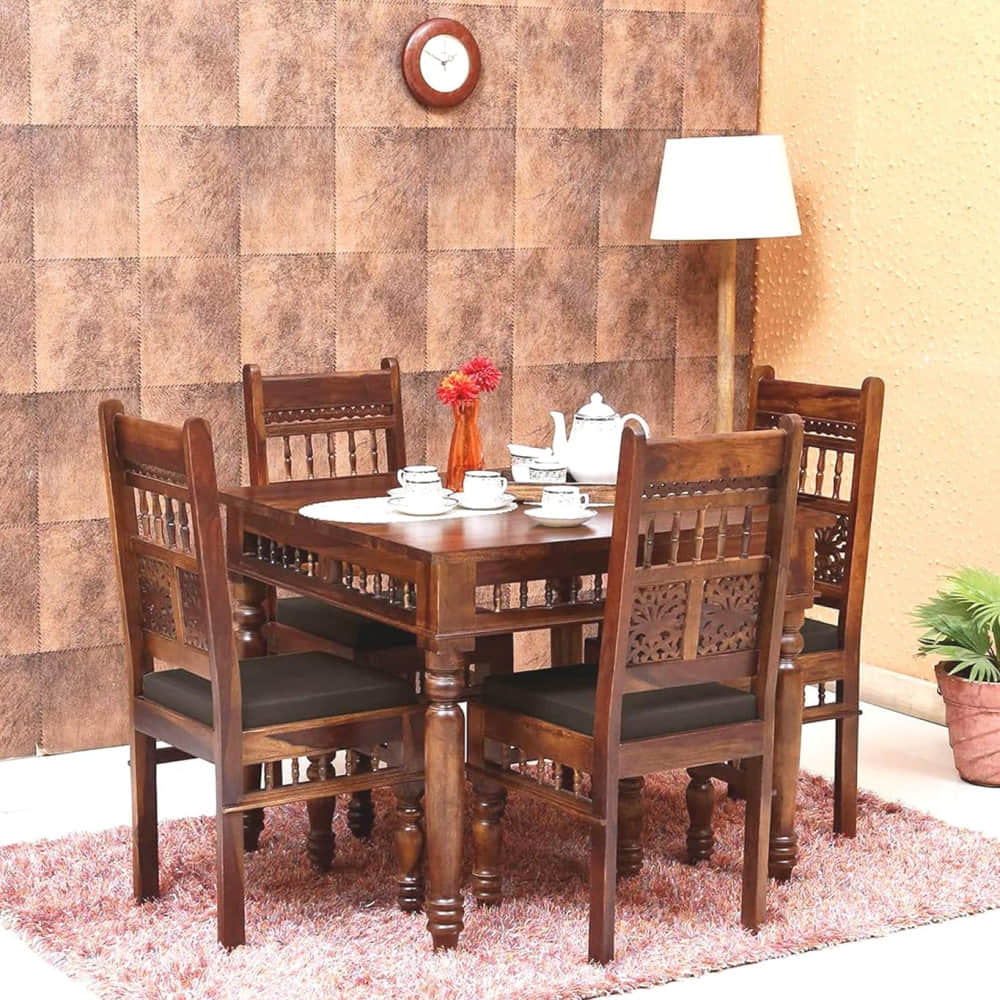 Introducing Apkainterior's Segur Solidwood 4 Seater Dining Set The wooden grain details and sleek metal accents make this piece more stunning