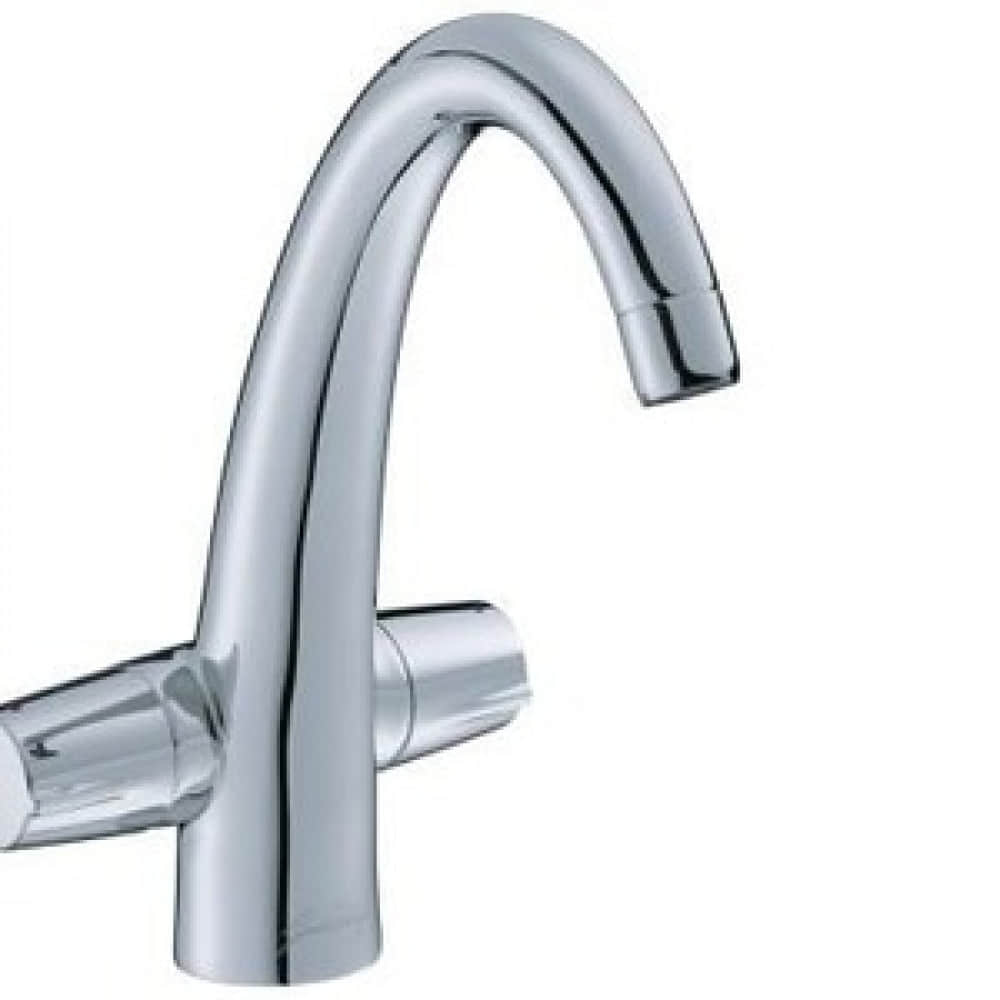 The distinctive and unique high gooseneck spout of this elegant range of faucets offers an artistic and contemporary focal point to any bathroom