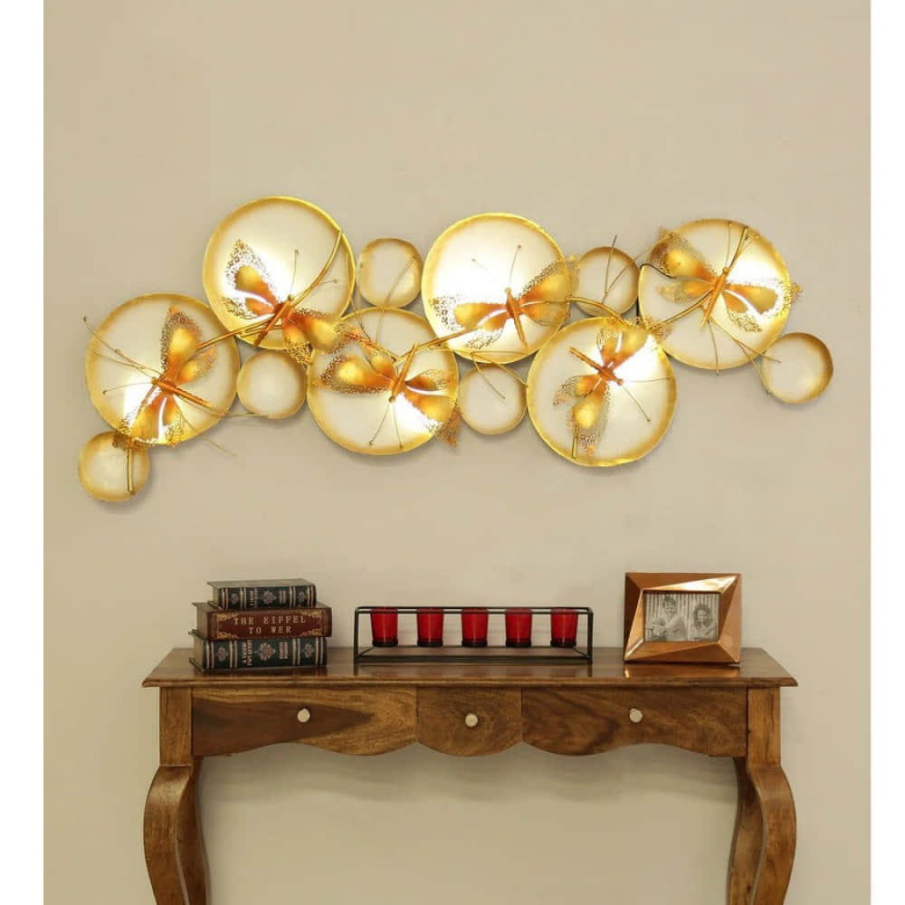 Wrought Iron Butterfly Wall Art With Led In Gold