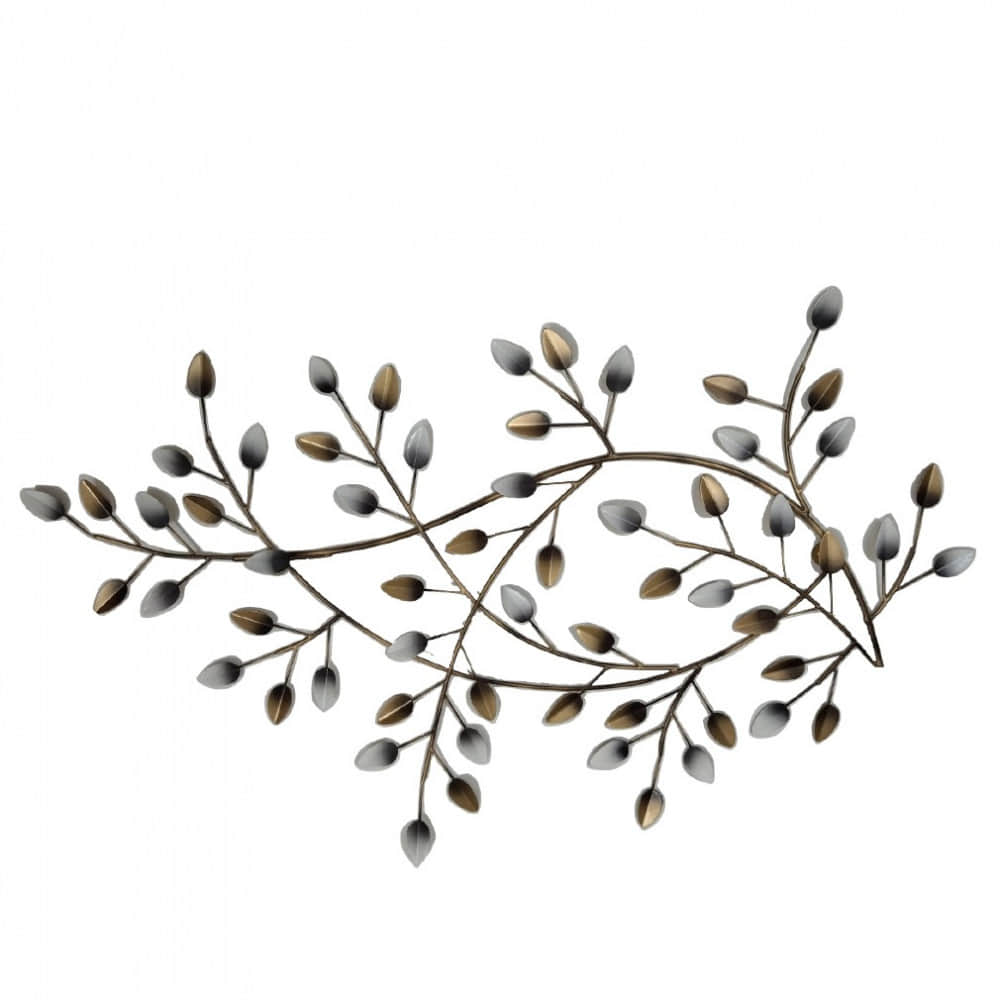Metal branch with leaves iron art hand painted gloss and gold finish