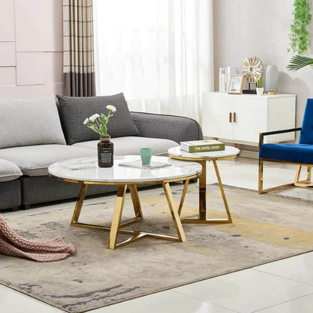 Vinca Round White Marble Top Coffee Table (set Of 2)