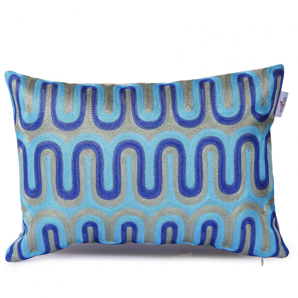 Nomaadi Blue Geometrical Embroidered Lumbar Cushion Cover 12x20 Inches Home Decor Decorative Throw Pillow Living Room Bed Sofa Chair