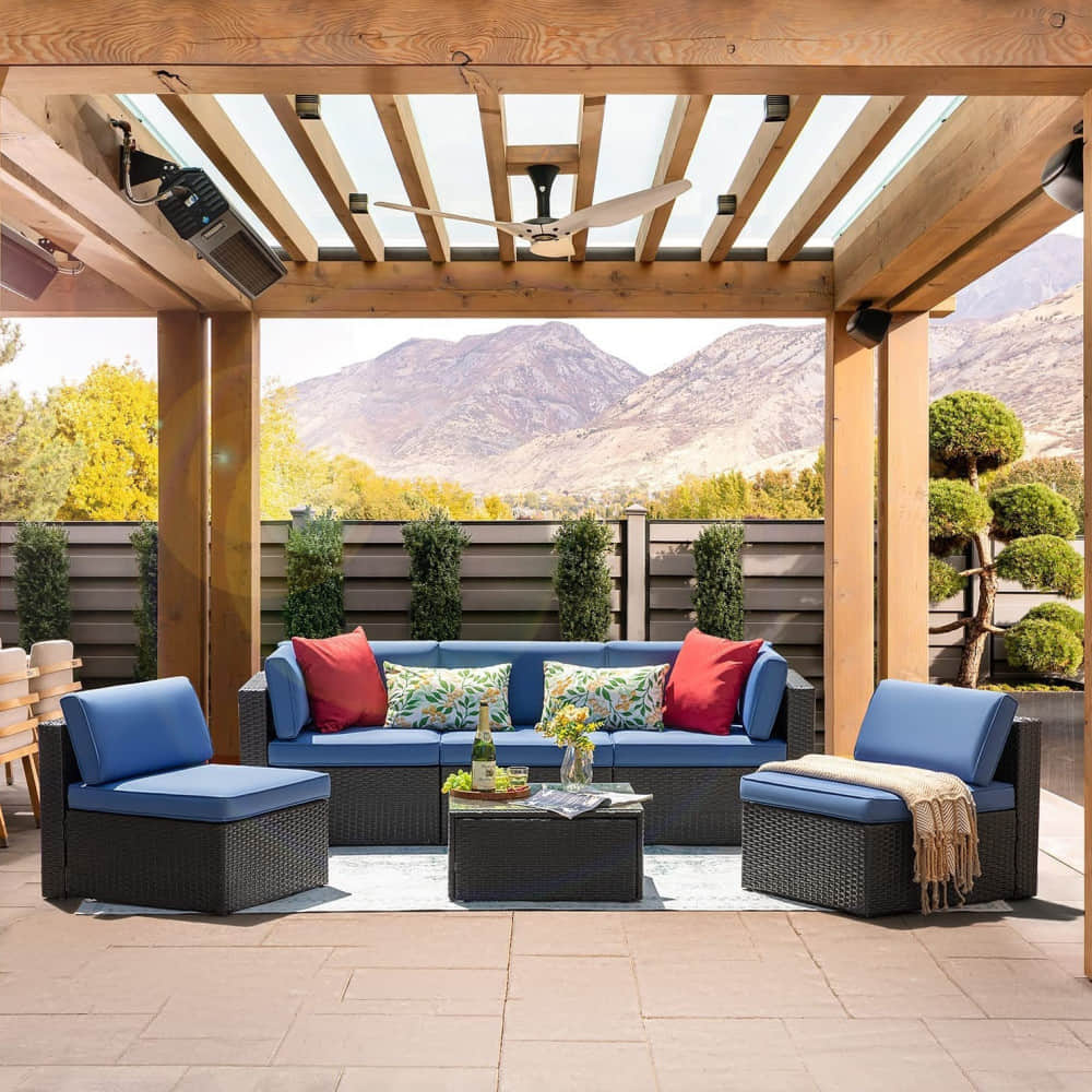 | Wicker sofa set with center table, outdoor patio furniture set ottoman with cushions for poolside, garden, or balcony. | |