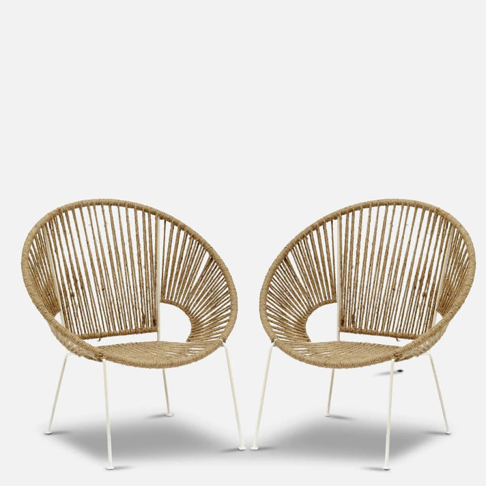 Rope And Metal Outdoor Chair In White & Natural Finish (set Of 2)