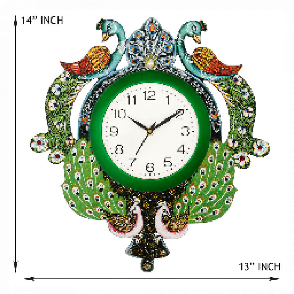 Peacock Decorative Wall Clock 14"/13"