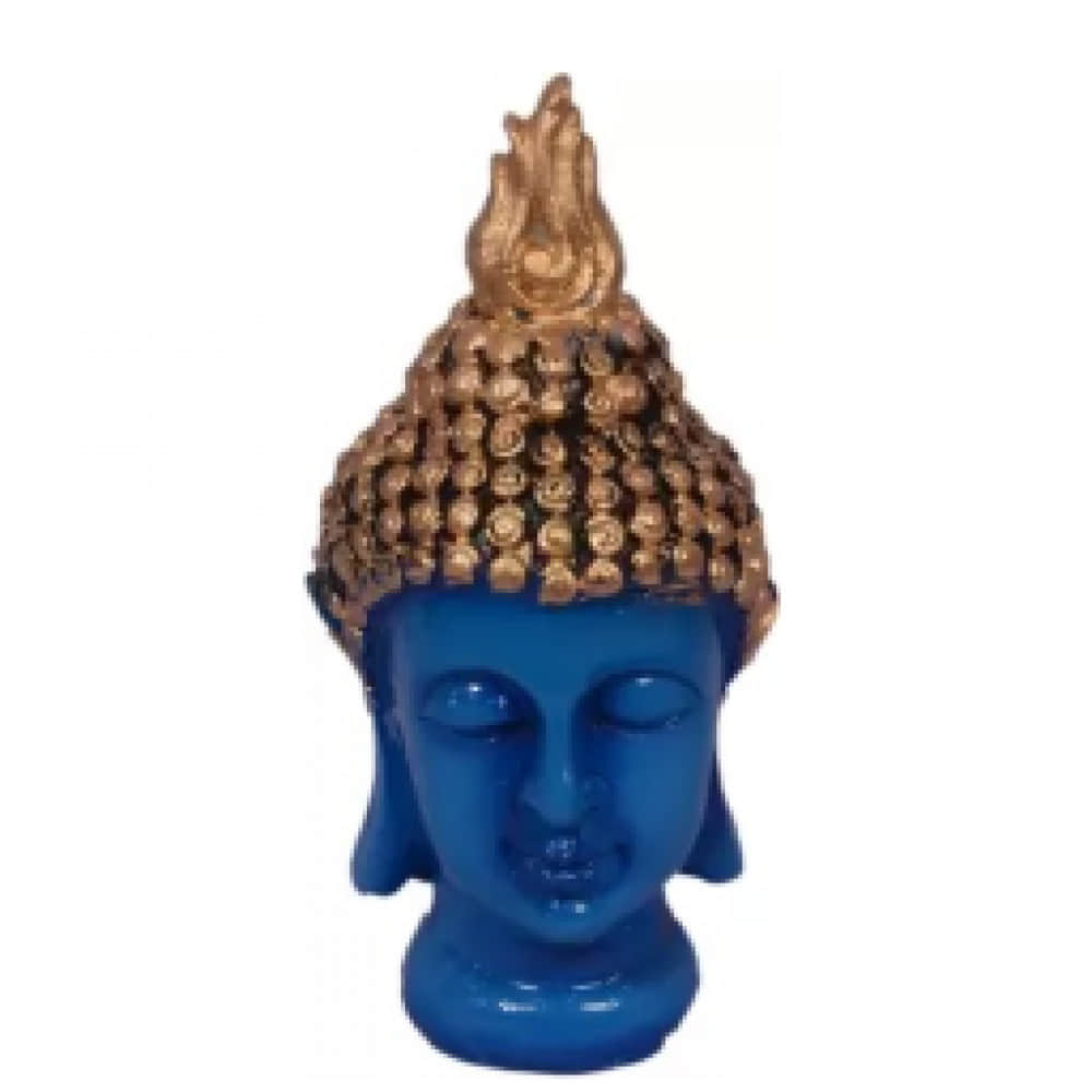 Polyresin Buddha Head Figurine Idol Decorative Showpiece - 15 Cm (polyresin, Dark Blue, Gold)