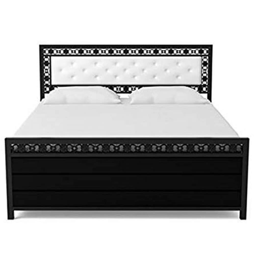 Material : Metal | Finish : Matte | Style : Contemporary | Bed Size : Single | Room Type : Bedroom| Color : Black Matt Finish | Headrest : Ivory