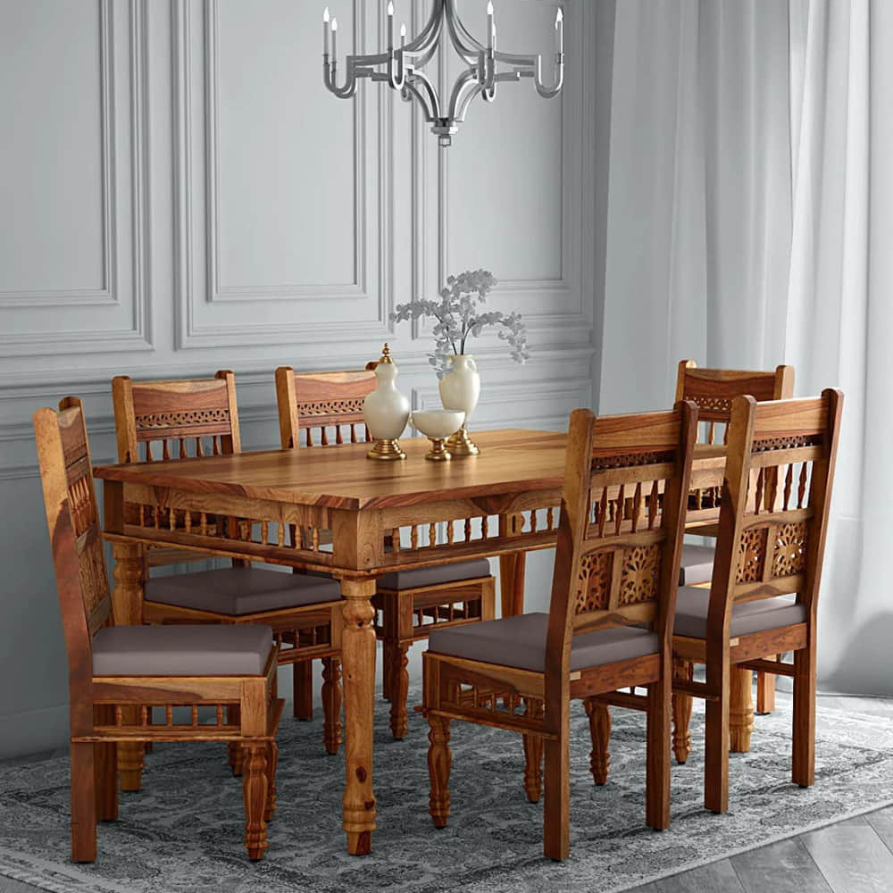 Introducing Apkainterior's Elise Six-Seater Dining Table With 6 Chairs The wooden grain details make this piece more stunning