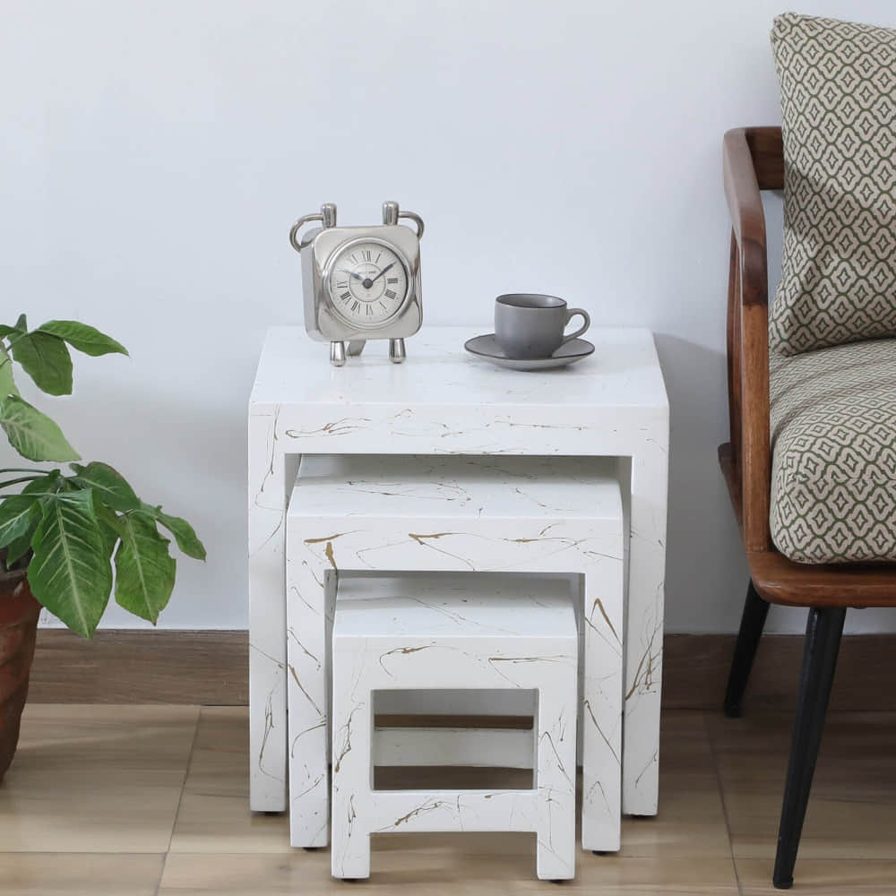 Ness Solid Wood Nest Table In White Colour