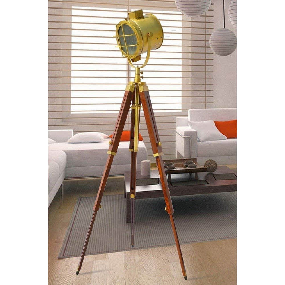 Spot Light With Wooden Tripod/lamp Adjustable Floor Stand With Antique Polished