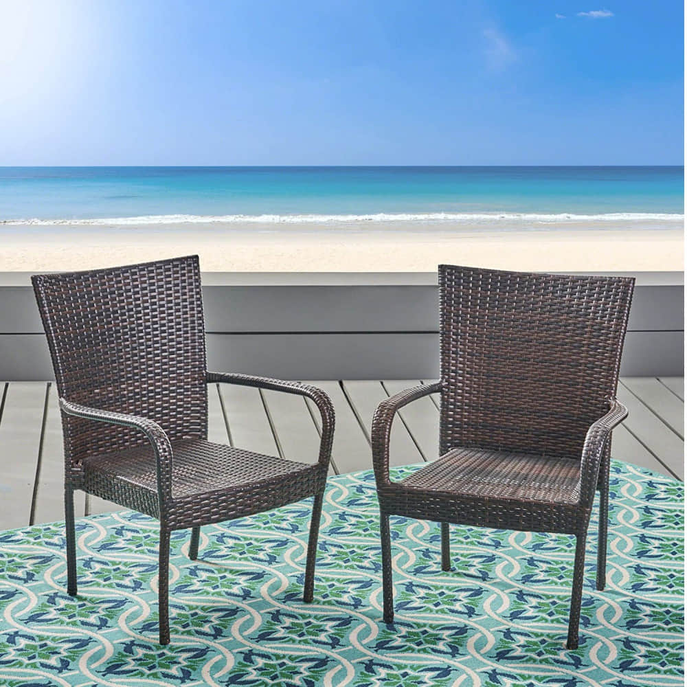 Our dining chair set has the look, feel, and design of contemporary style with its thin legs and woven wicker look