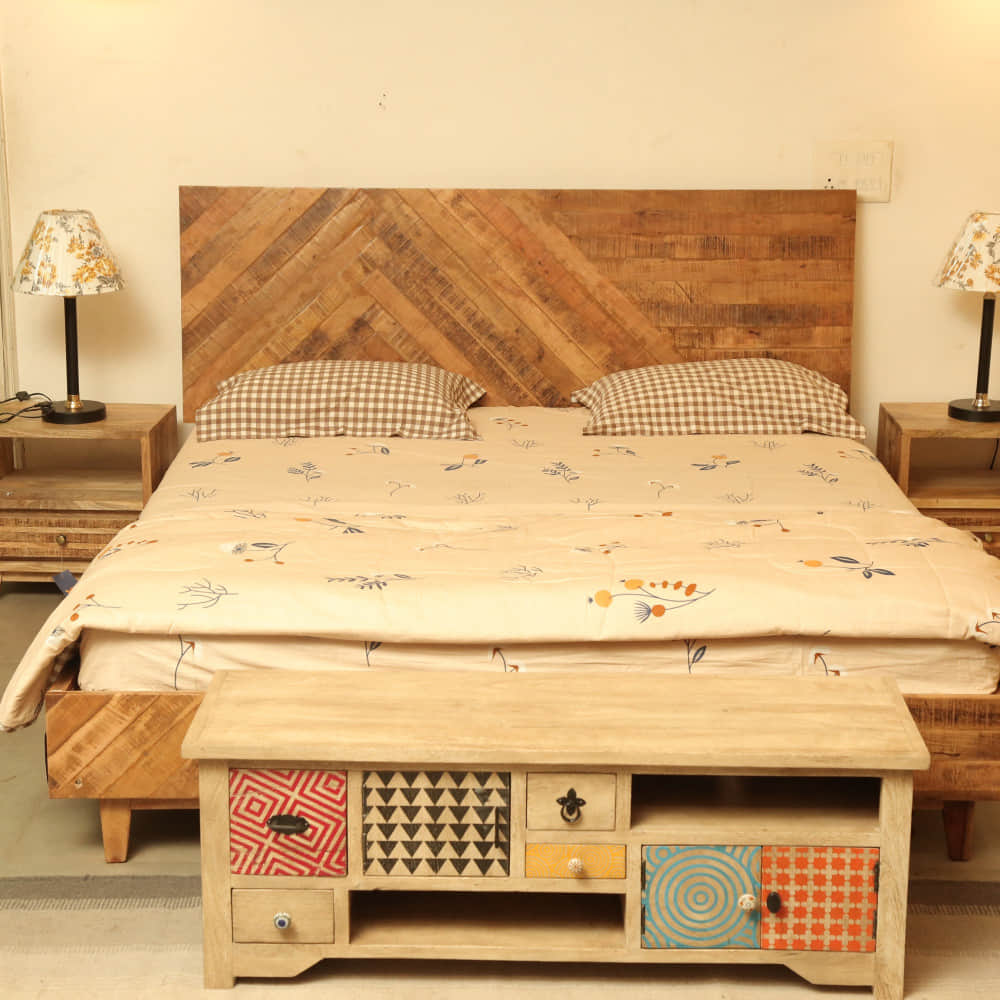 Strip Mango Wood King Size Bed