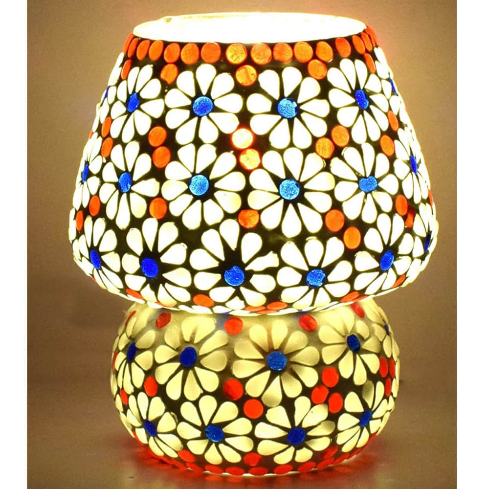 This mushroom shaped glass table lamp is made with hand cut pieces of high quality glass beads