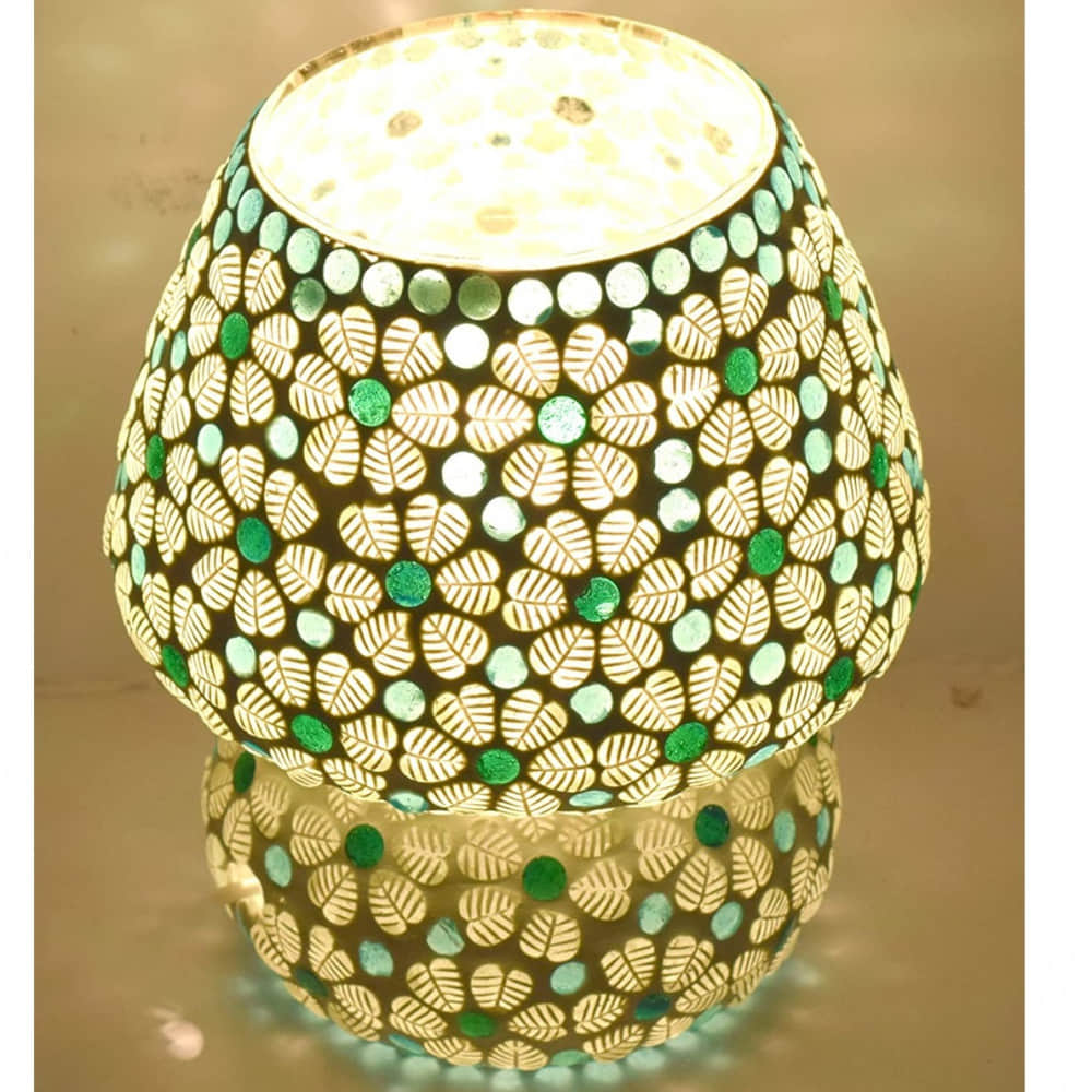 This mushroom shaped glass table lamp is made with hand cut pieces of high quality glass beads
