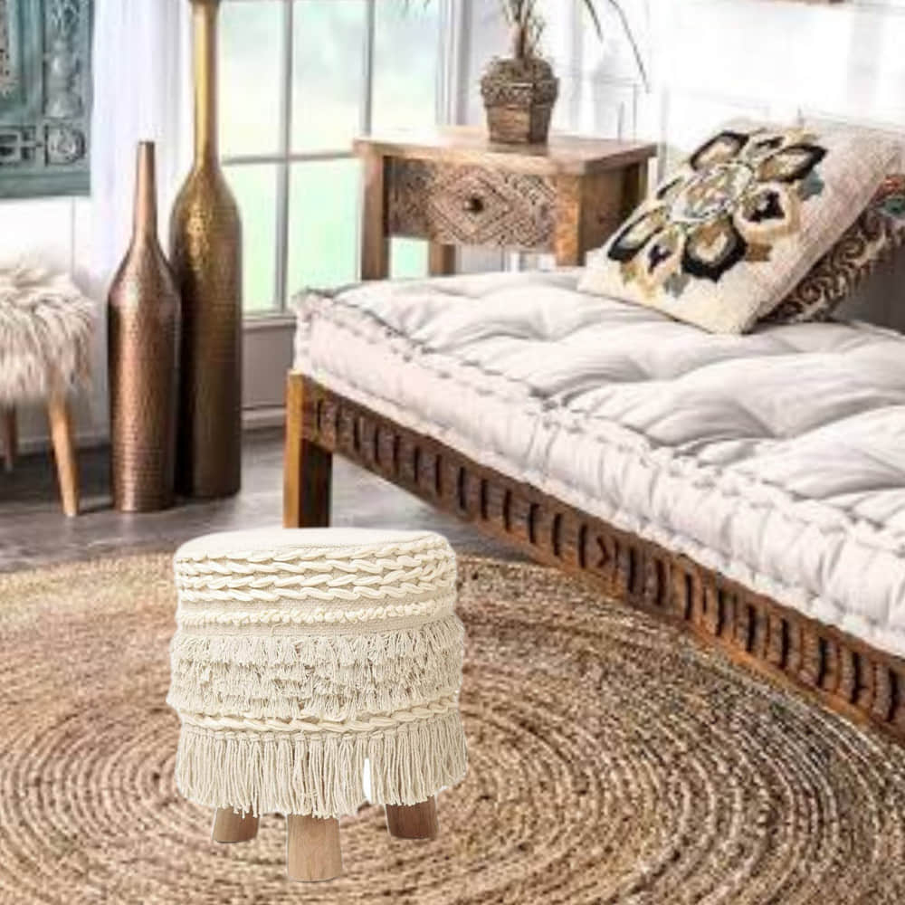 Ottoman Style Stool In White