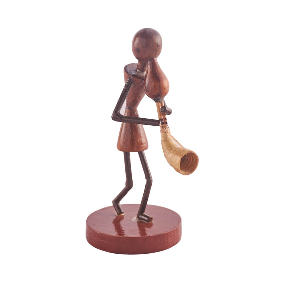 A beautiful Warali wooden handcrafted statue of tarapari playing the traditional instrument tarpa