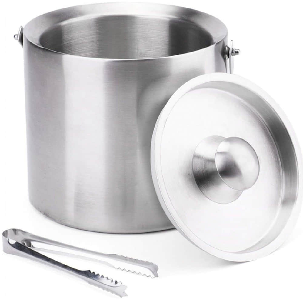 Satin Finish Stainless Steel Double Wall Ice Bucket Set 2 L