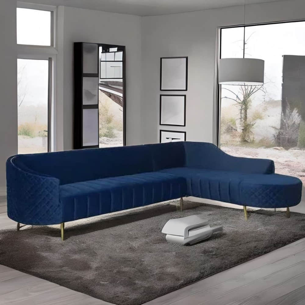 Yolo Velvet Lhs Sectional Sofa In Royal Blue Colour